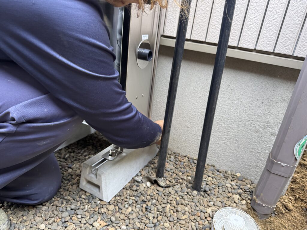 伸ばした配管を土で埋めなおし、砂利を引いた上に浄水器を設置します。