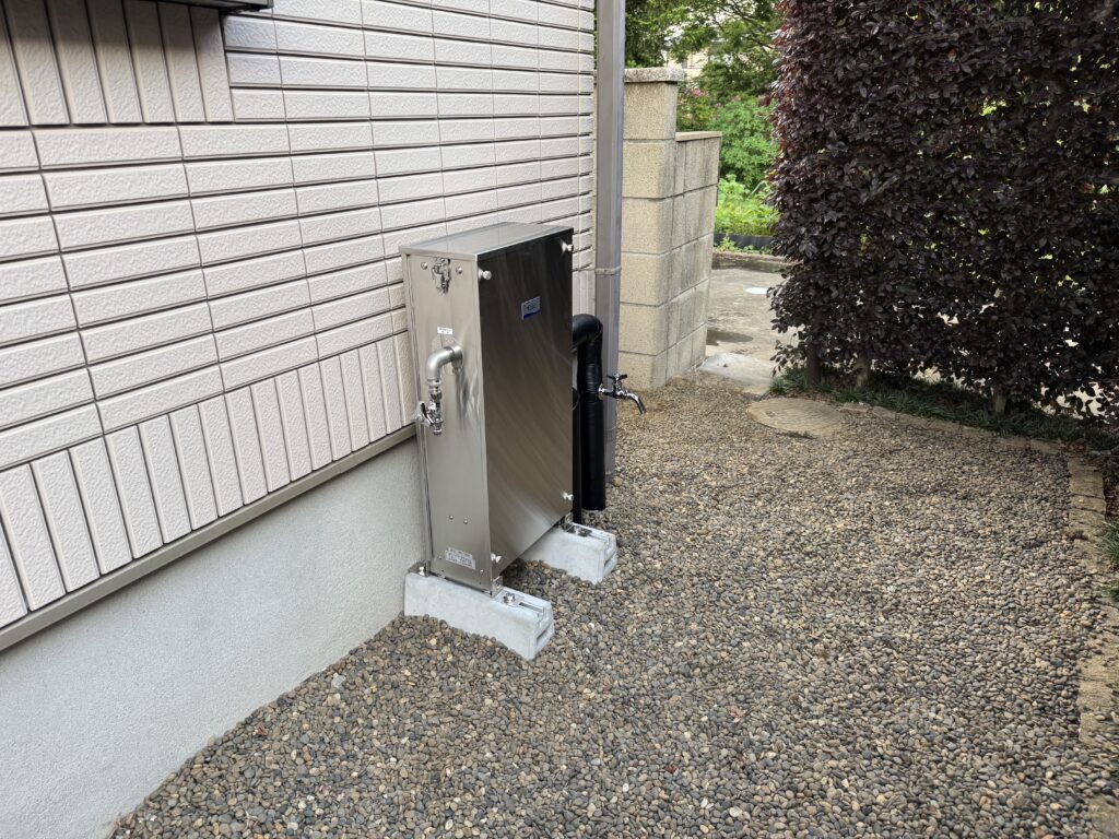 家を挟んで対角にある外水道も、浄水になることをお客様に伝えると、
