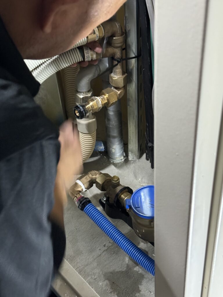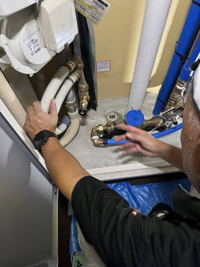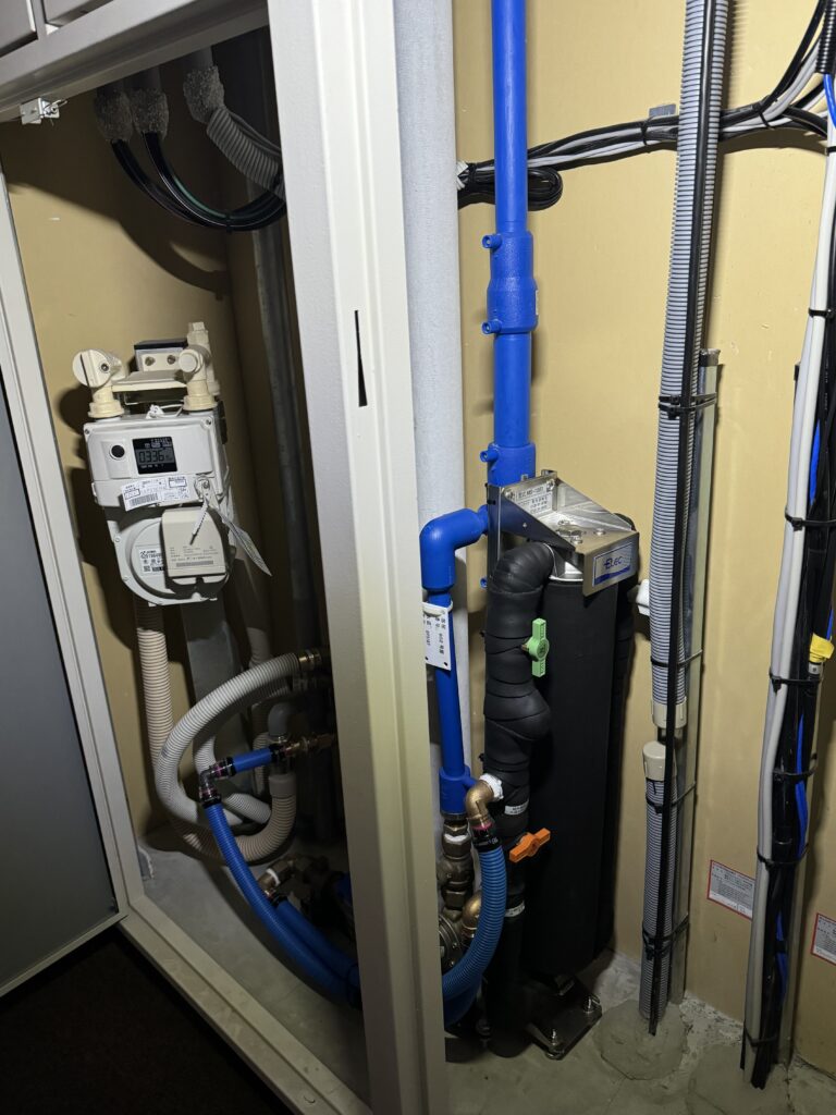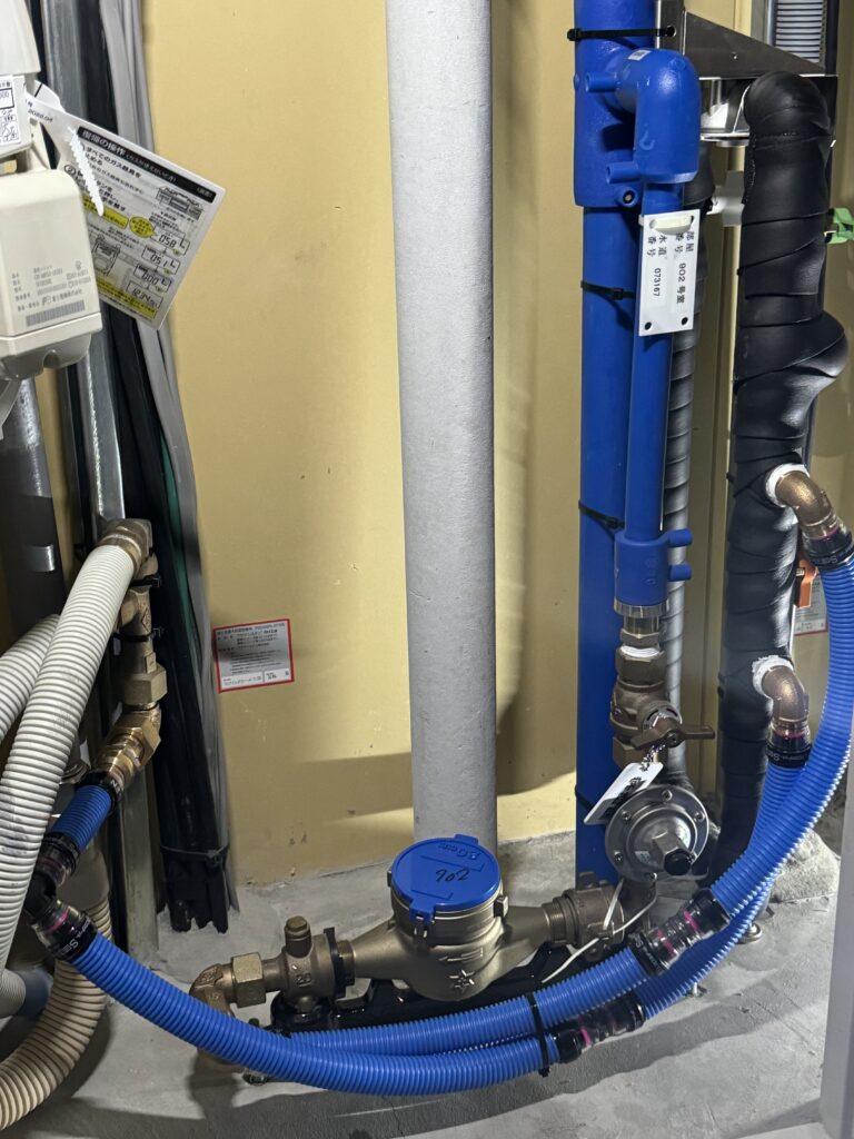 水道メーターの確認やバルブの開閉など、今後のことも考えて配管されています。