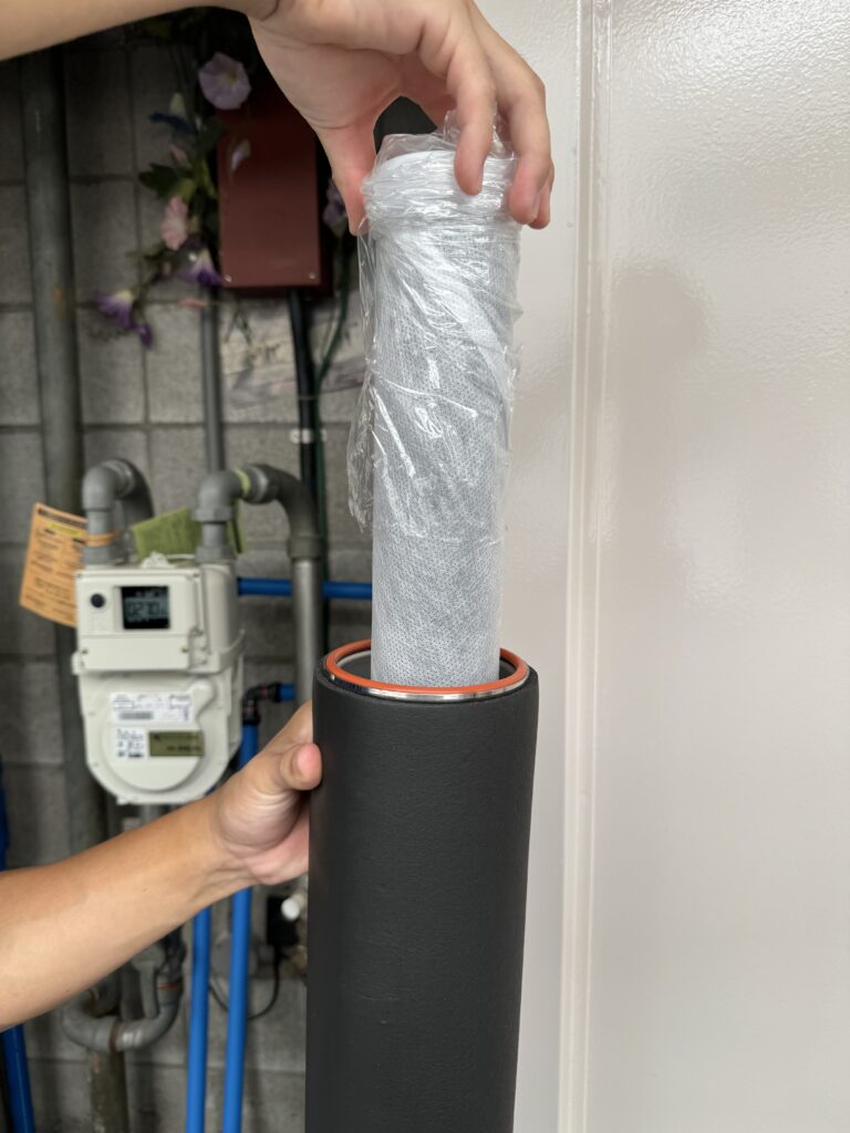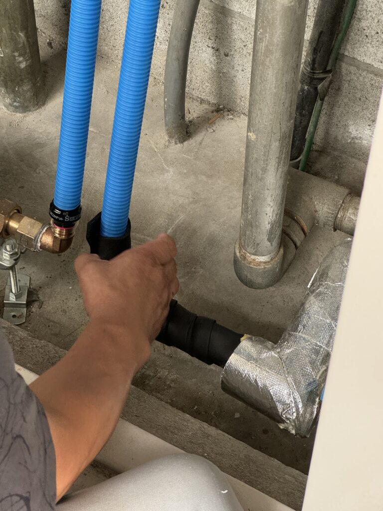 元々保温されていた部分なので、エアロフレックスで巻きなおしていきます。