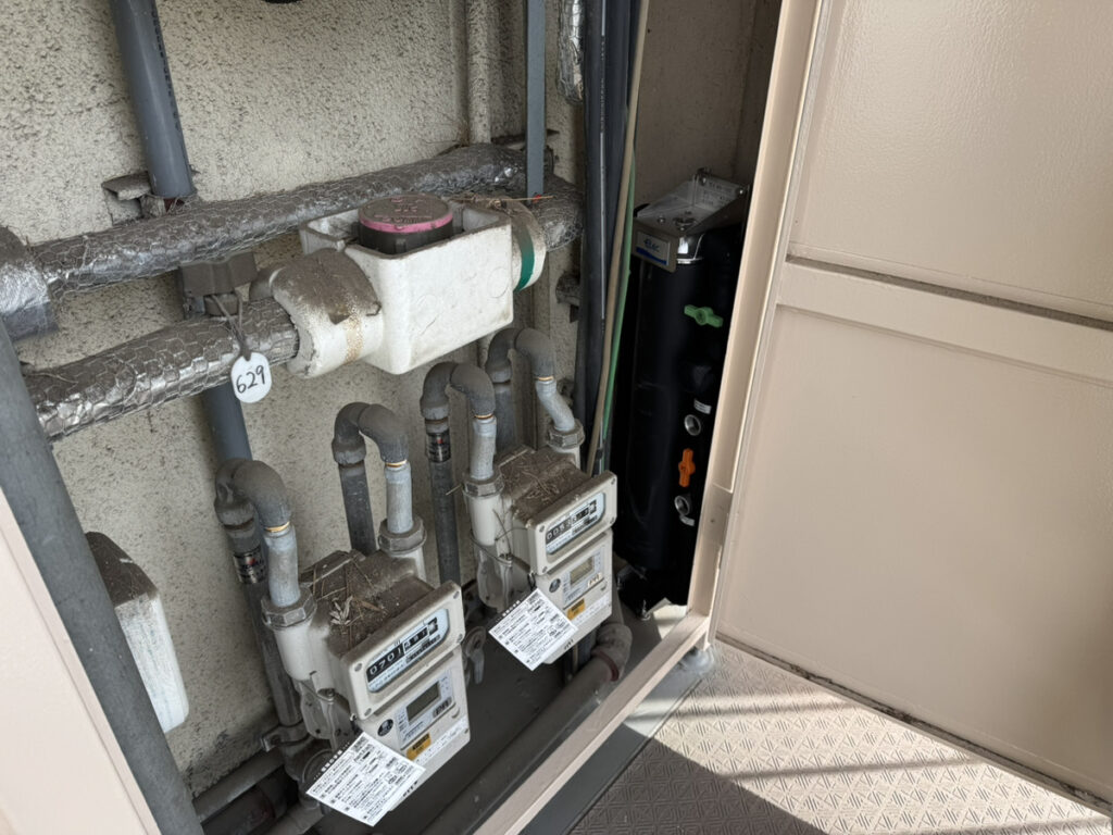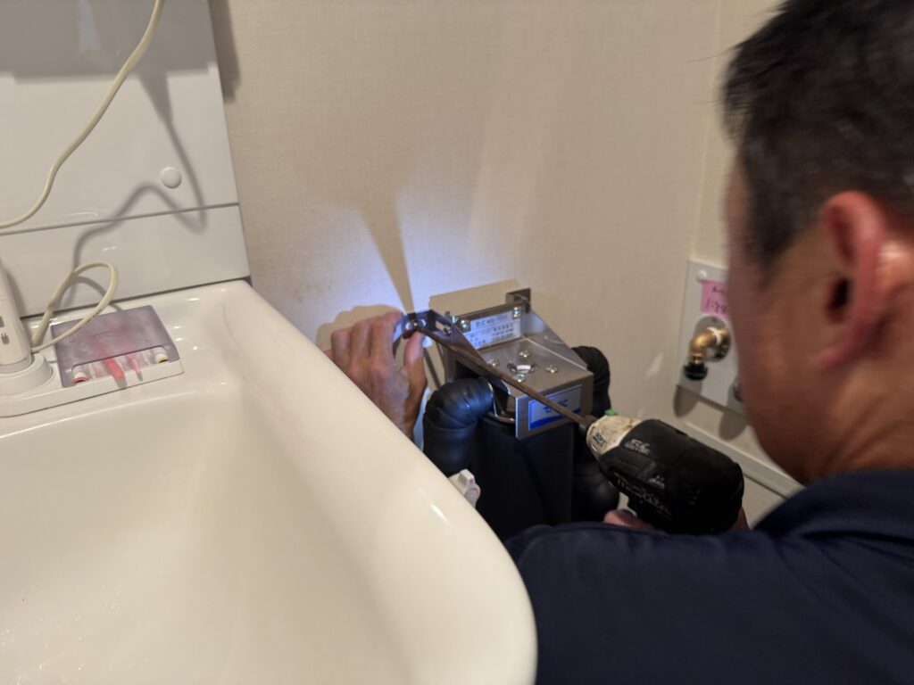 本来パイプスペース内に設置する際は、周囲の既設管にインシュロックで固定するのですが